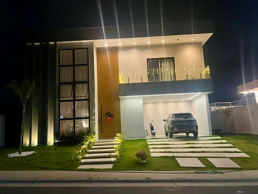 Casa de alto padrão com 4 suítes, sendo uma Suíte Master, duas Suítes e um Quarto de Hóspedes. O imóvel conta com amplos espaços de convivência, incluindo uma Sala de Estar, Sala de Jantar, Sala de TV e um Escritório. Para o lazer e descanso, a propriedade oferece uma linda Piscina. A residência possui no total 6 banheiros, além de Lavanderia e garagem para 4 carros, sendo 2 vagas cobertas e 2 descobertas. Com foco em sustentabilidade, a casa está equipada com sistema de energia solar e recuperação de água da chuva. O design de interiores foi cuidadosamente elaborado por Kilze Guimarães Canto da Casa. Todos os ambientes da casa, incluindo a cozinha, são climatizados com ar condicionado. A propriedade também dispõe de 2 Cisternas, 2 Caixas d’água e um Boiler para água quente em todos os ambientes. A casa será entregue totalmente mobiliada, com exceção dos eletrônicos e pertences pessoais. Se interessou? Nos contate via WhatsApp! Teremos um enorme prazer em lhe atender :D