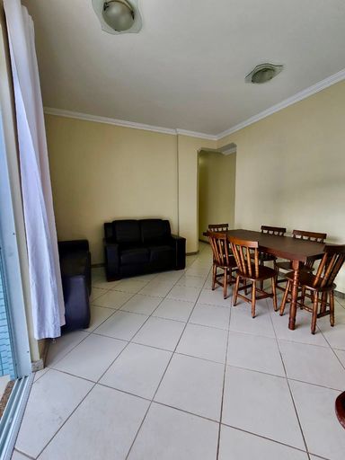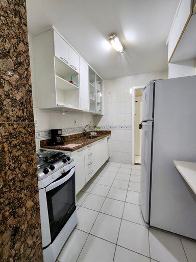 O imóvel conta com sala integrada à varanda, cozinha com armários planejados, área de serviço interna e externa, dois quartos sendo uma suíte, ambos com varanda, além de banheiro social.