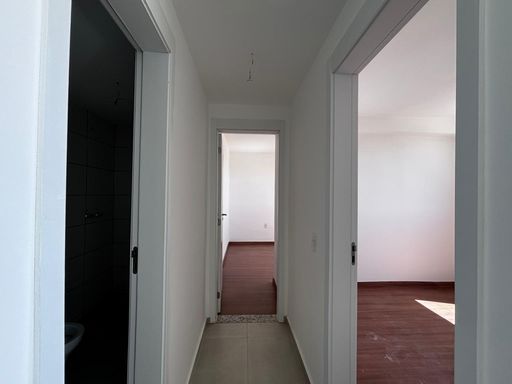 O imóvel é composto por 2 quartos, sendo 1 suíte, 2 banheiros (incluindo o da suíte), sala, cozinha com área de serviço e 1 vaga de garagem.