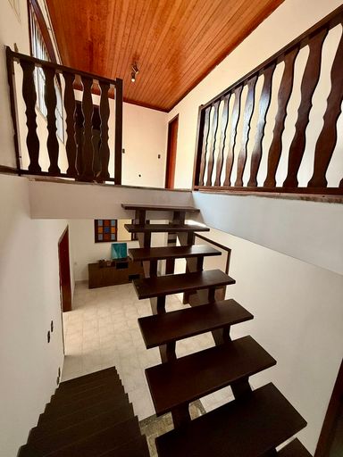 A residência possui 4 banheiros ao todo, garantindo praticidade no dia a dia. A garagem coberta para 2 carros oferece segurança e proteção, enquanto a varanda no segundo andar traz um espaço extra para relaxar e aproveitar a vista.