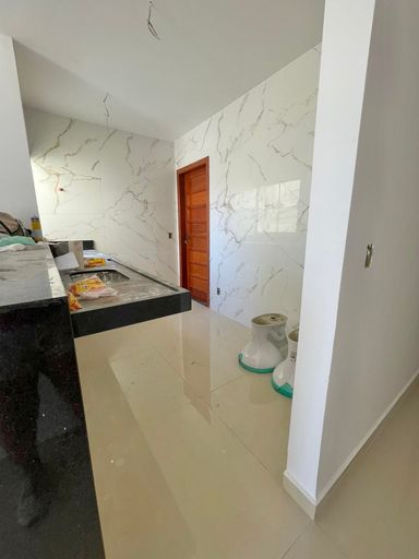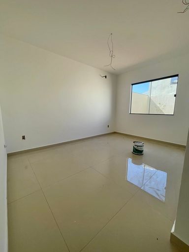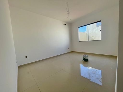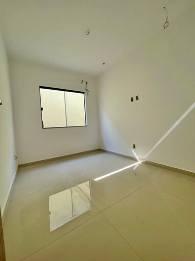 O imóvel é composto por três quartos, sendo uma suíte, sala, cozinha, banheiro social, varanda, área de serviço e uma vaga de garagem.