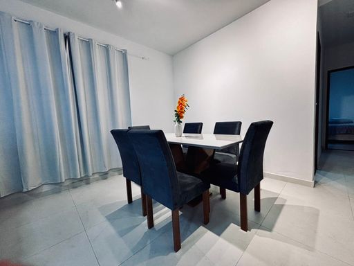 O imóvel oferece um ótimo padrão de conforto e espaço, com três quartos, sendo uma suíte, além de sala e cozinha amplas, ideais para quem busca ambientes integrados e funcionais. Conta também com banheiro social e área de serviço, distribuídos de forma inteligente para garantir o melhor aproveitamento dos ambientes.