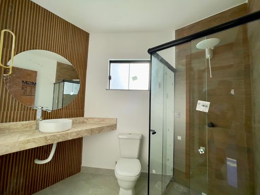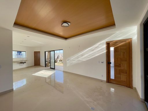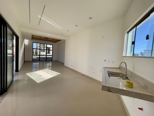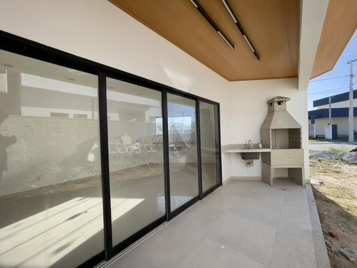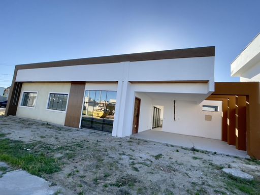 A casa conta com 3 quartos, sendo 1 suíte, sala e cozinha integradas, proporcionando um ambiente moderno e funcional, além de banheiro social e lavanderia coberta.