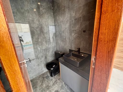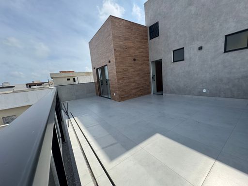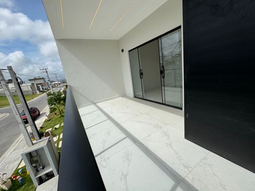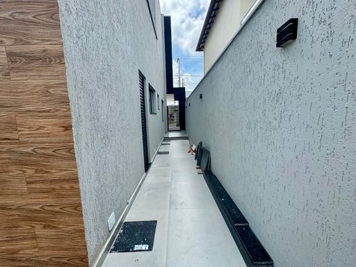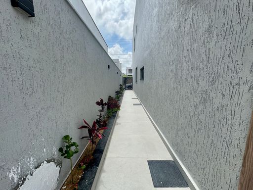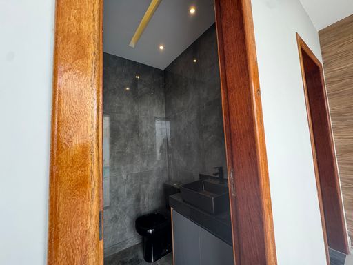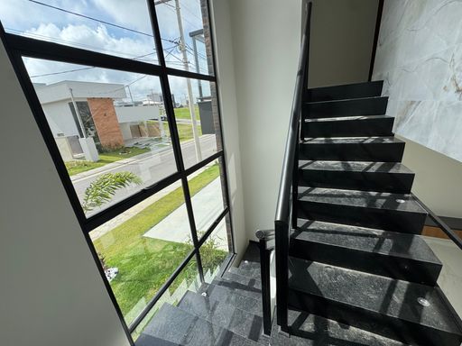 No primeiro pavimento, possui banheiro social, quarto térreo e lavanderia. No segundo pavimento, duas suítes master com varanda garantem conforto e privacidade.