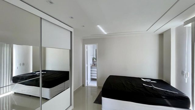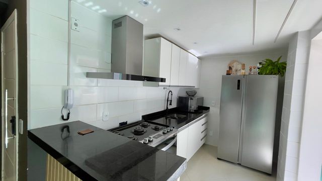 No segundo nível, encontra-se uma suíte mais ampla, também com varanda, além de um banheiro de apoio. O grande destaque do imóvel está no terraço, um espaço generoso com área gourmet e churrasqueira, perfeito para receber amigos e familiares enquanto aprecia a bela vista para o canal.