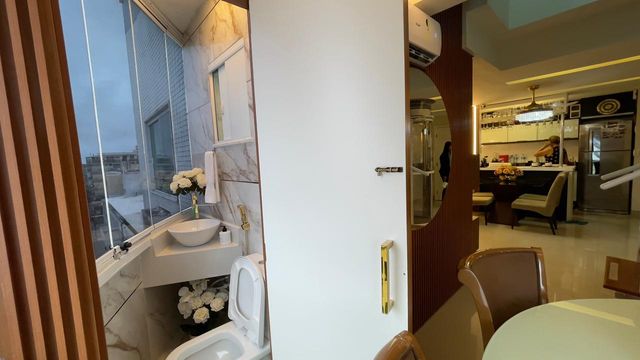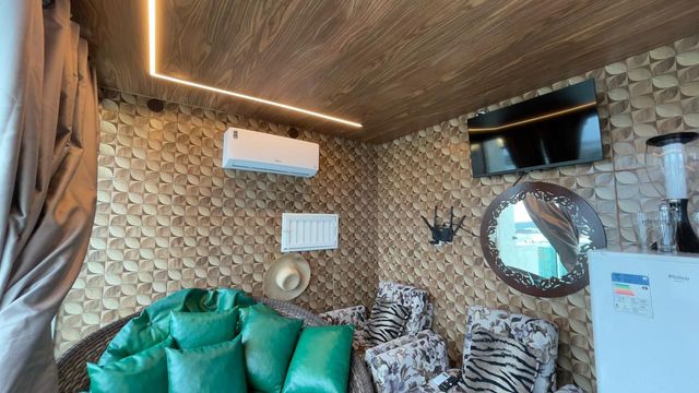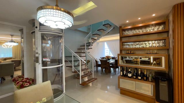 Já na cobertura/terraço, o espaço é perfeito para momentos de lazer e confraternização, com uma área gourmet completa, hidromassagem e uma vista panorâmica deslumbrante para o mar. O imóvel ainda possui elevador interno com capacidade para duas pessoas e carga de até 200kg, agregando mais comodidade e exclusividade.