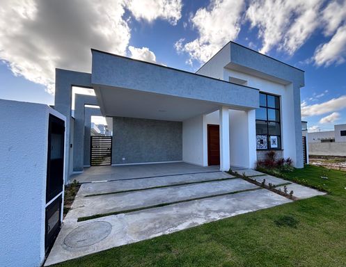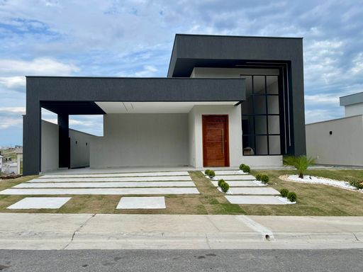 Esta magnífica residência, em fase de finalização, foi projetada para oferecer o máximo de conforto e sofisticação. Sua fachada imponente, com linhas modernas e acabamentos de primeira qualidade, destaca-se como um verdadeiro marco de elegância no condomínio mais desejado da cidade. Com uma excelente distribuição de espaços, a casa conta com 3 quartos, sendo 2 suítes, todas com ótimos acabamentos e amplas janelas que garantem iluminação natural. A sala, com pé direito duplo, proporciona uma sensação de amplitude e integração com a cozinha, criando um ambiente perfeito para momentos de convivência e lazer. O imóvel é revestido por porcelanato de altíssima qualidade, oferecendo durabilidade e estética impecável. A garagem coberta tem capacidade para 2 carros, proporcionando mais comodidade e segurança. Localizada em uma das áreas mais nobres da cidade, em um condomínio com toda a infraestrutura e segurança que você merece, esta casa representa uma oportunidade única de viver com exclusividade e qualidade. Se interessou? Não hesite em nos contatar! Teremos um enorme prazer em lhe atender :D
