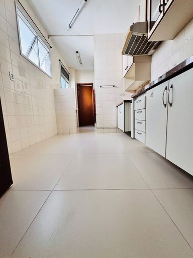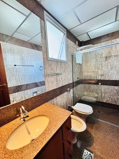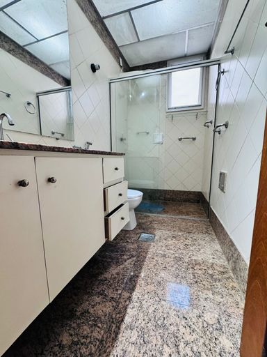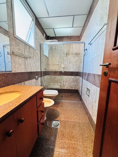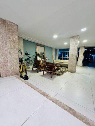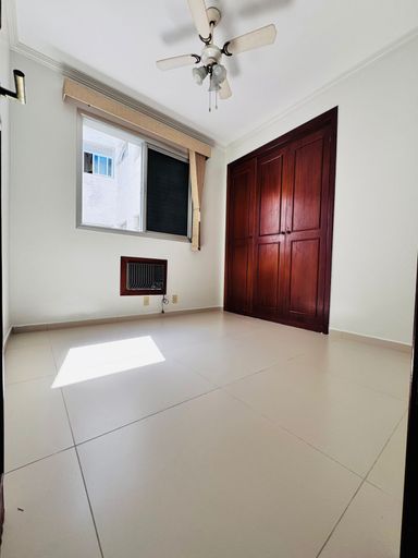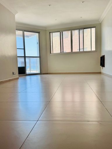 composto por três quartos, sendo uma suíte, dependência completa de empregada e banheiro social. Conta com sala ampla, cozinha, área de serviço e uma vaga de garagem. O imóvel oferece vista perpétua para o mar e recebe o sol da manhã, garantindo excelente iluminação natural e conforto térmico.