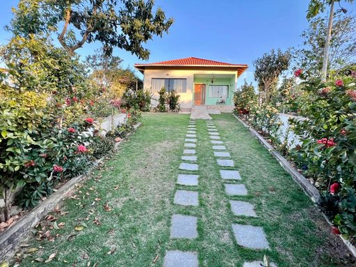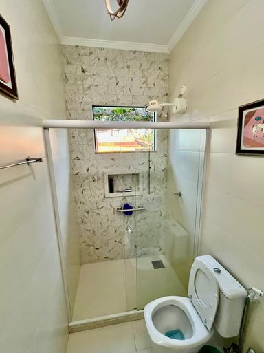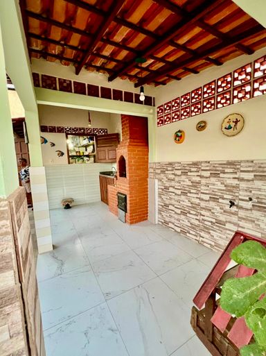 Na área externa encontramos churrasqueira coberta, chuveirão, 2 quartos externos anexos e garagem para 2 ou até 3 carros, dependendo do porte.