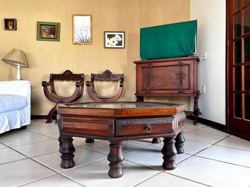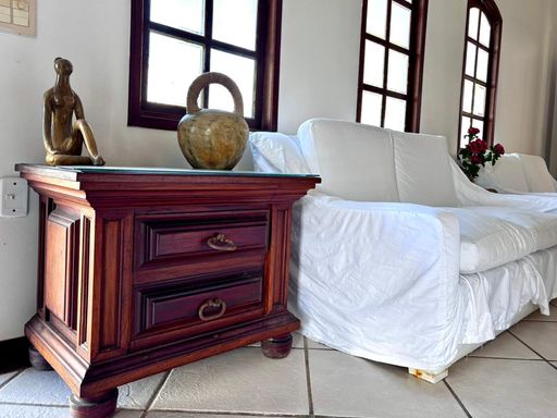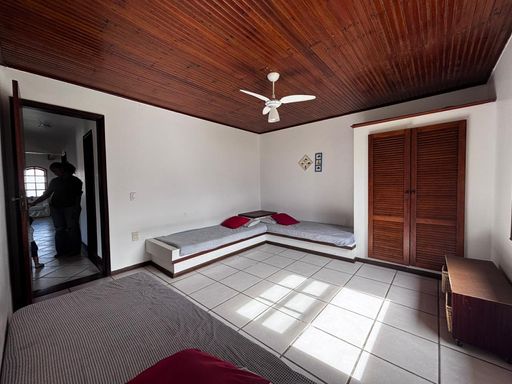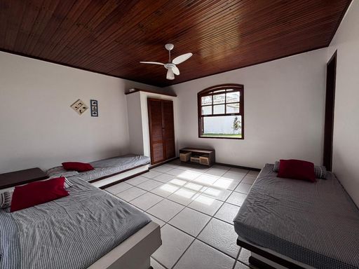 A casa conta com uma sala ampla dividida em dois ambientes, cozinha funcional, quatro quartos sendo três suítes, banheiro social, área de serviço e um quarto adicional que pode ser utilizado como depósito ou espaço de armazenamento.