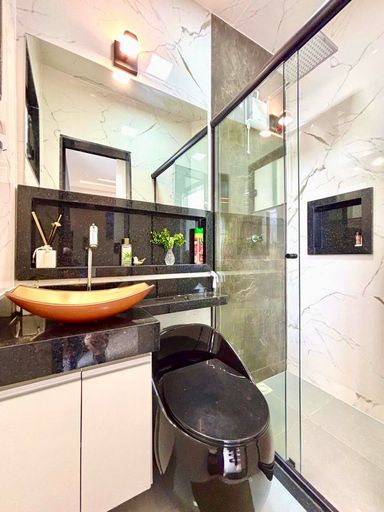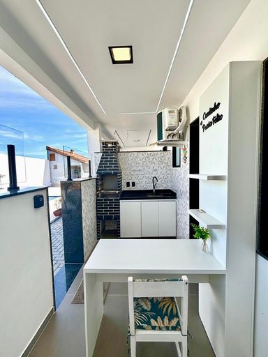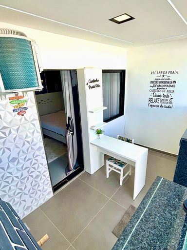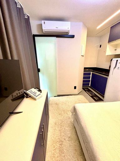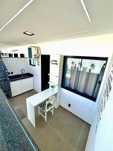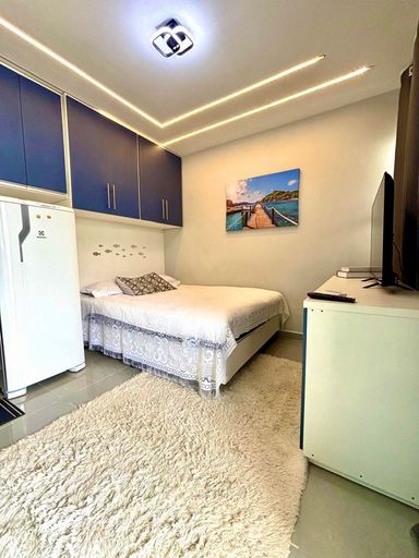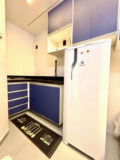 O flat é mobiliado e decorado, oferecendo praticidade e conforto em um espaço moderno. A unidade 6 já está pronta e será entregue completamente mobiliada, contando com ar-condicionado split de 9.000 BTUs, sofá-cama, Smart TV de 43”, rack, geladeira e cooktop, além de um brinde especial: churrasqueira privativa.