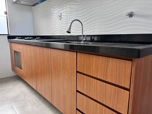 O imóvel conta ainda com garagem para 2 carros, banheiros com planejados, cozinha planejada equipada com cooktop e depurador, além de área de serviço prática e funcional.