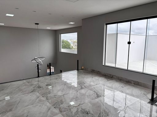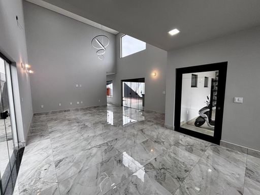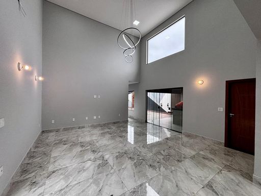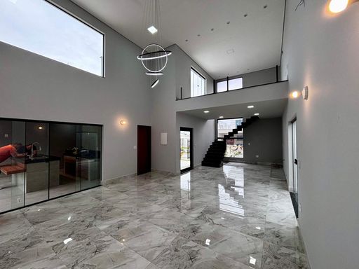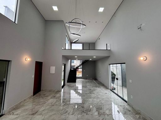 Possui uma linda sala ampla com pé-direito duplo e mezanino, totalmente integrada à área gourmet e à piscina, criando um espaço harmonioso e convidativo. O mezanino, com guarda-corpo em vidro, está preparado para receber uma academia, oferecendo um ambiente de bem-estar e praticidade.