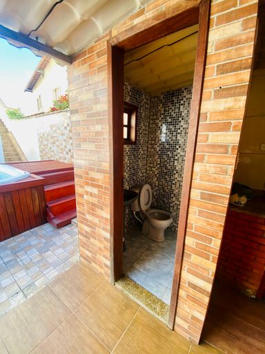 No primeiro andar, o imóvel conta com uma sala ampla em dois ambientes, cozinha funcional, copa, banheiro social, lavanderia, garagem, área gourmet completa com churrasqueira e fogão a lenha, lavabo e um aconchegante ofurô.
